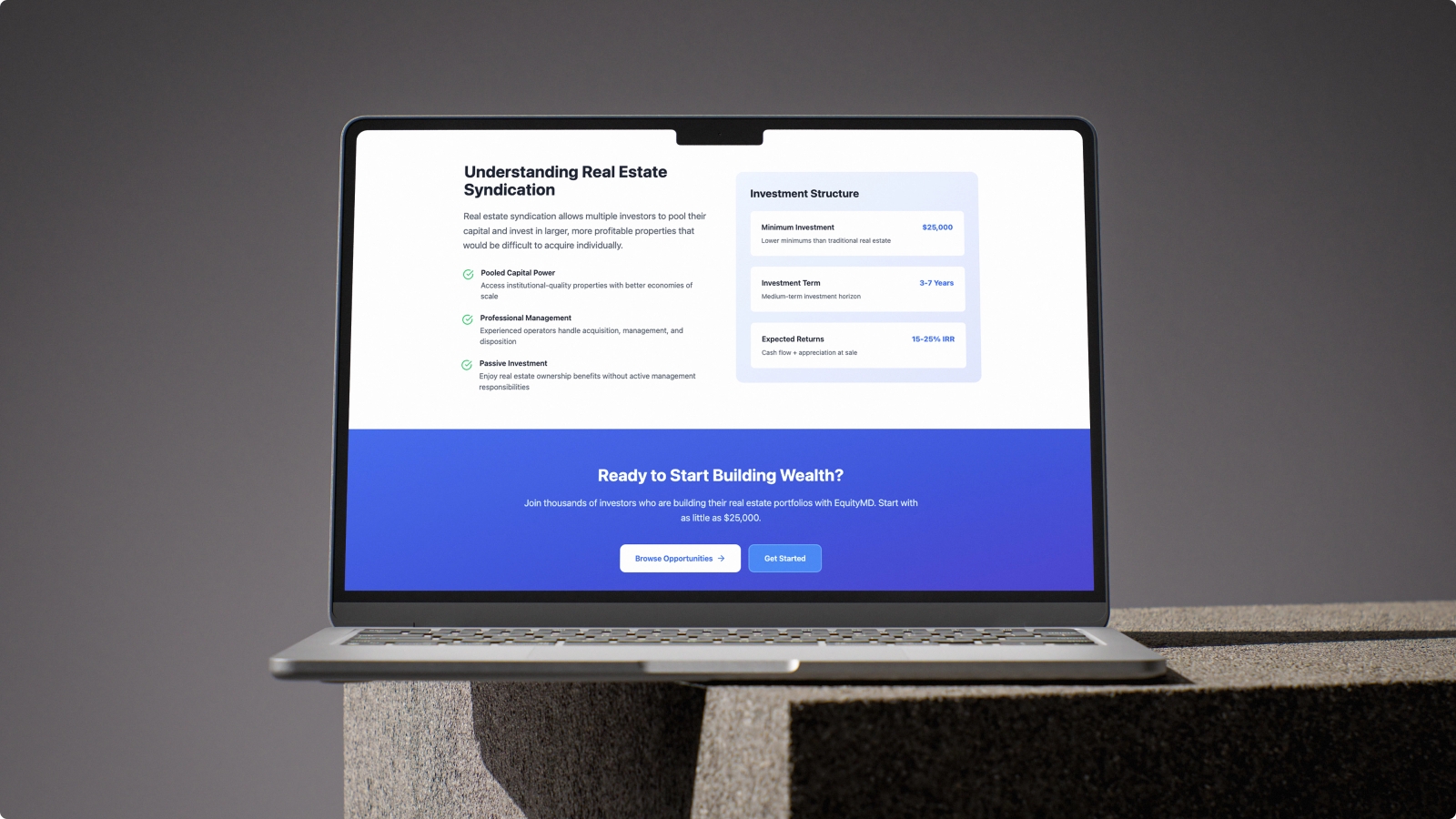 - Position EquityMD as a top-tier SaaS solution for real estate syndication.